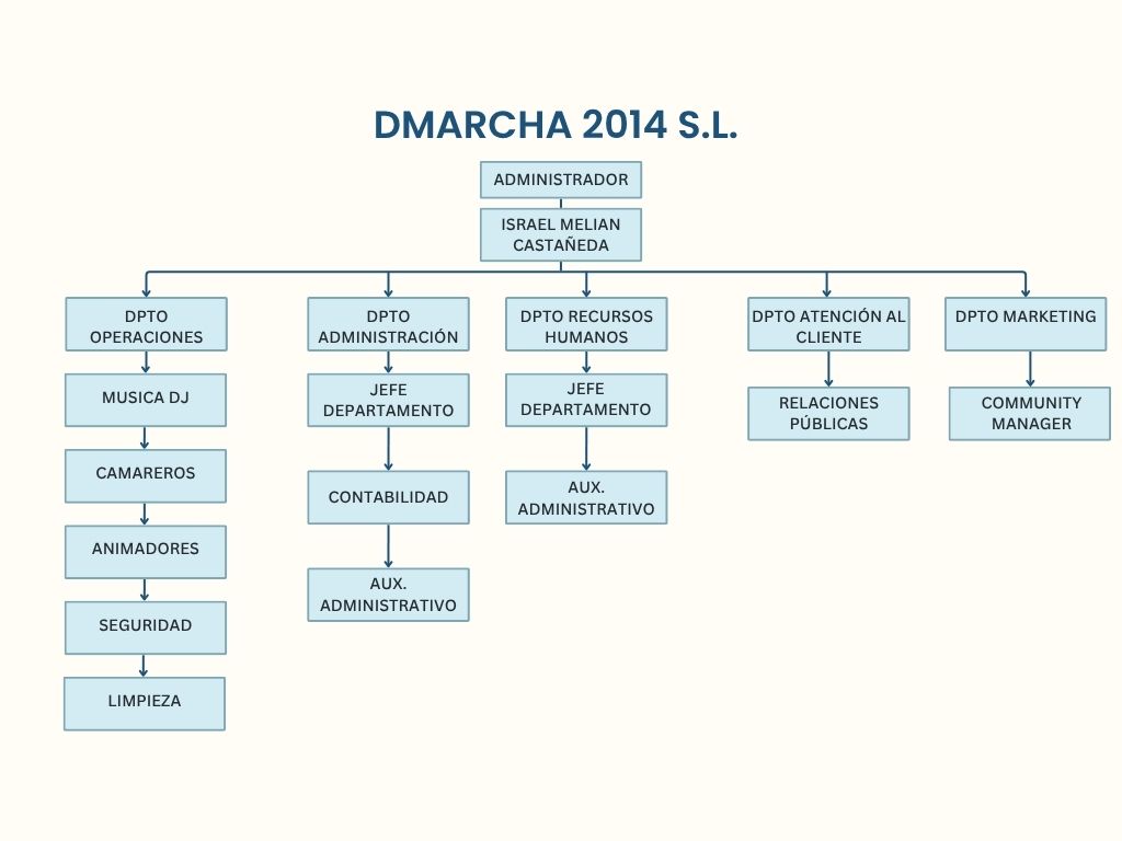La administración y dirección general de la entidad DMARCHA 2014 SLU recae en su administrador, quien ejerce las funciones de gestión, representación y supervisión general de las actividades empresariales desarrolladas por la sociedad.